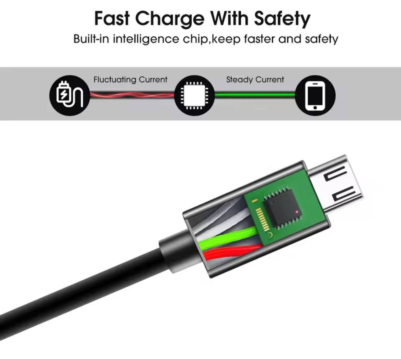 ما يميز كابل USB TO MICRO USB 3M هو احتوائه على شريحة ذكية مدمجة. هذه الشريحة المتطورة تقوم بتنظيم التيار الكهربائي، مما يحول دون تقلباته الضارة (Fluctuating Current) ويضمن تيارًا ثابتًا (Steady Current) لجهازك. هذا لا يسرّع عملية الشحن فحسب، بل يحمي بطارية جهازك من التلف ويطيل عمرها الافتراضي، مما يوفر لك شحنًا “أسرع وأكثر أمانًا”.