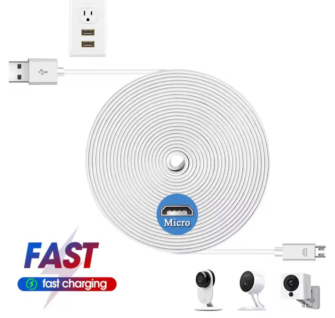 - توصيل الكاميرات الأمنية وأجهزة المراقبة: العديد من الكاميرات الأمنية وأجهزة المراقبة المنزلية تستخدم منفذ Micro USB للطاقة. يوفر هذا الكابل توصيلاً ثابتًا وموثوقًا به لهذه الأجهزة، كما هو موضح في الصور المرفقة.